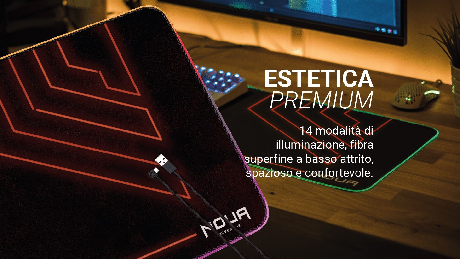 Tappetino Mouse Gaming NOUA DUSK RGB XXL 800X300X4 mm