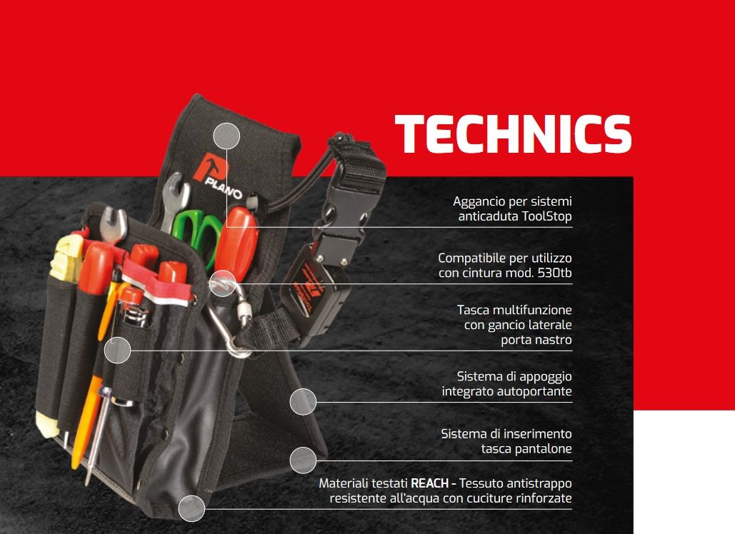 Pratica Tasca porta pinza da cintura Plano "Technics" 524TB in tessuto speciale rinforzato, adatta alla maggior parte di pinze e forbici, fotata di clip metallica adatta sd ogni tipo di cintura.