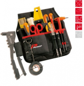 Pratica Tasca portautensili multifunzione da cintura Plano "Technics" 535TB in tessuto speciale rinforzato, dotata di asola elastica portautensili e catena porta nastro adesivo.