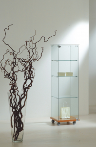 VETRINA Top Cristallo Temperato 5MM con base in legno colore ciliegio, grigio o wengè a scelta, vetrina senza luci vetrina h.140 cm vetrina profondità cm 40. 3 ripiani fissi a 33 cm di distanza.