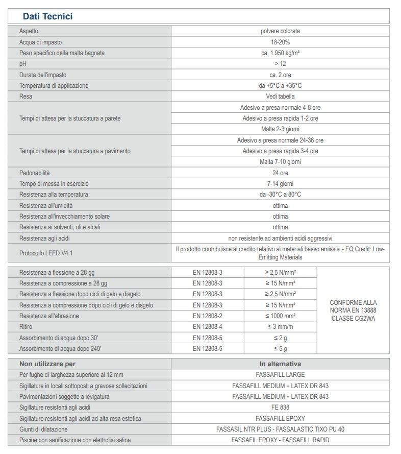 - Non utilizzare FASSAFILL MEDIUM come giunto di dilatazione o di frazionamento, anche quando impastato con il lattice LATEX DR 843.