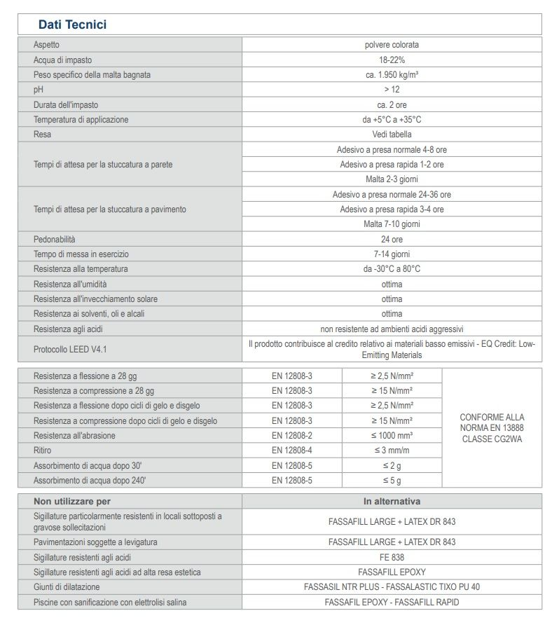 - Le tinte della cartella colori di FASSAFILL LARGE sono da considerarsi indicative, in quanto influenzate dalla porosità delle piastrelle del rivestimento.