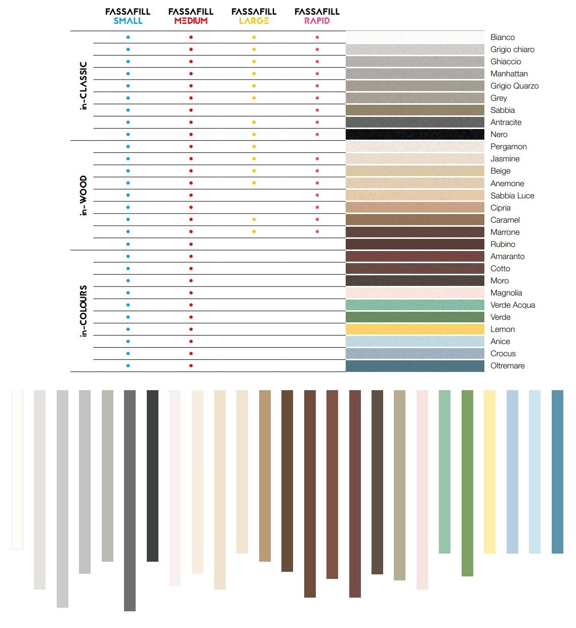 -  Le tinte della cartella colori di FASSAFILL RAPID sono da considerarsi indicative, in quanto influenzate dalla porosità delle piastrelle del rivestimento.