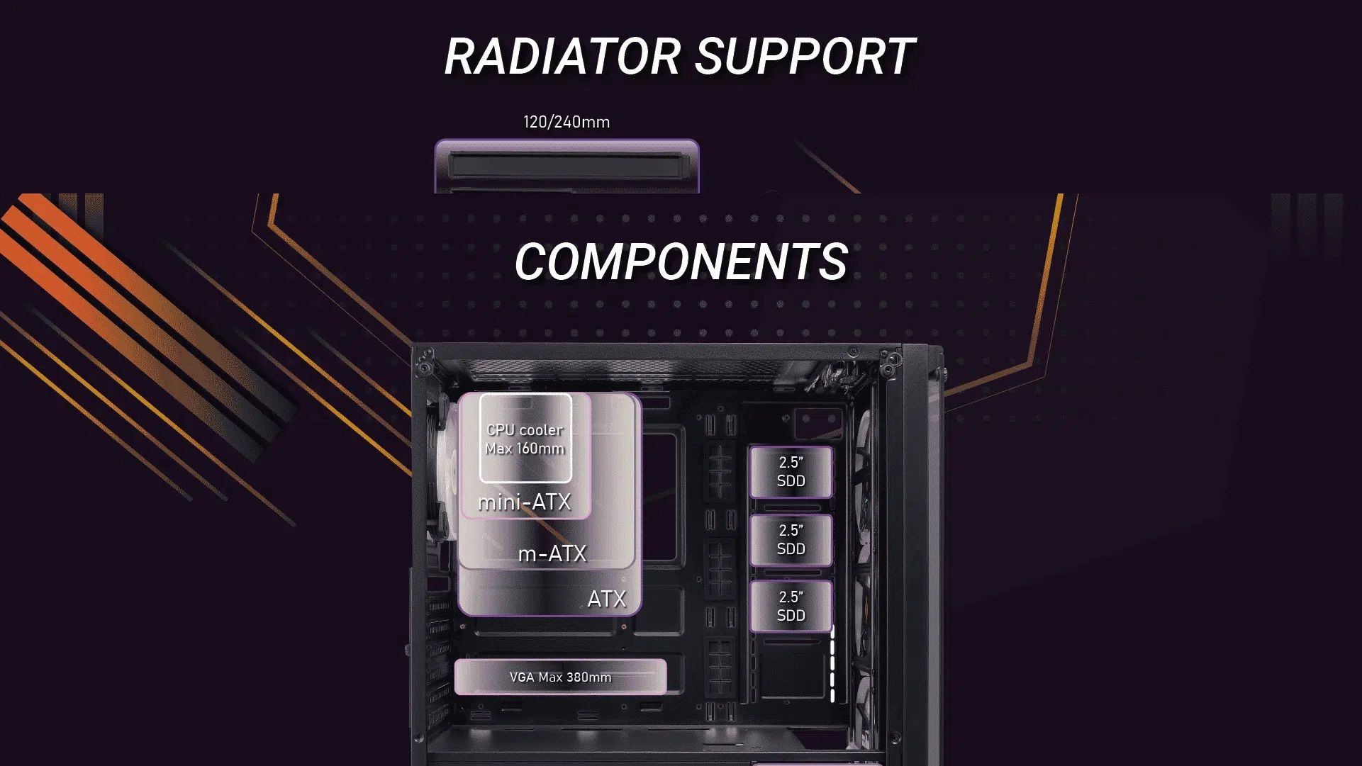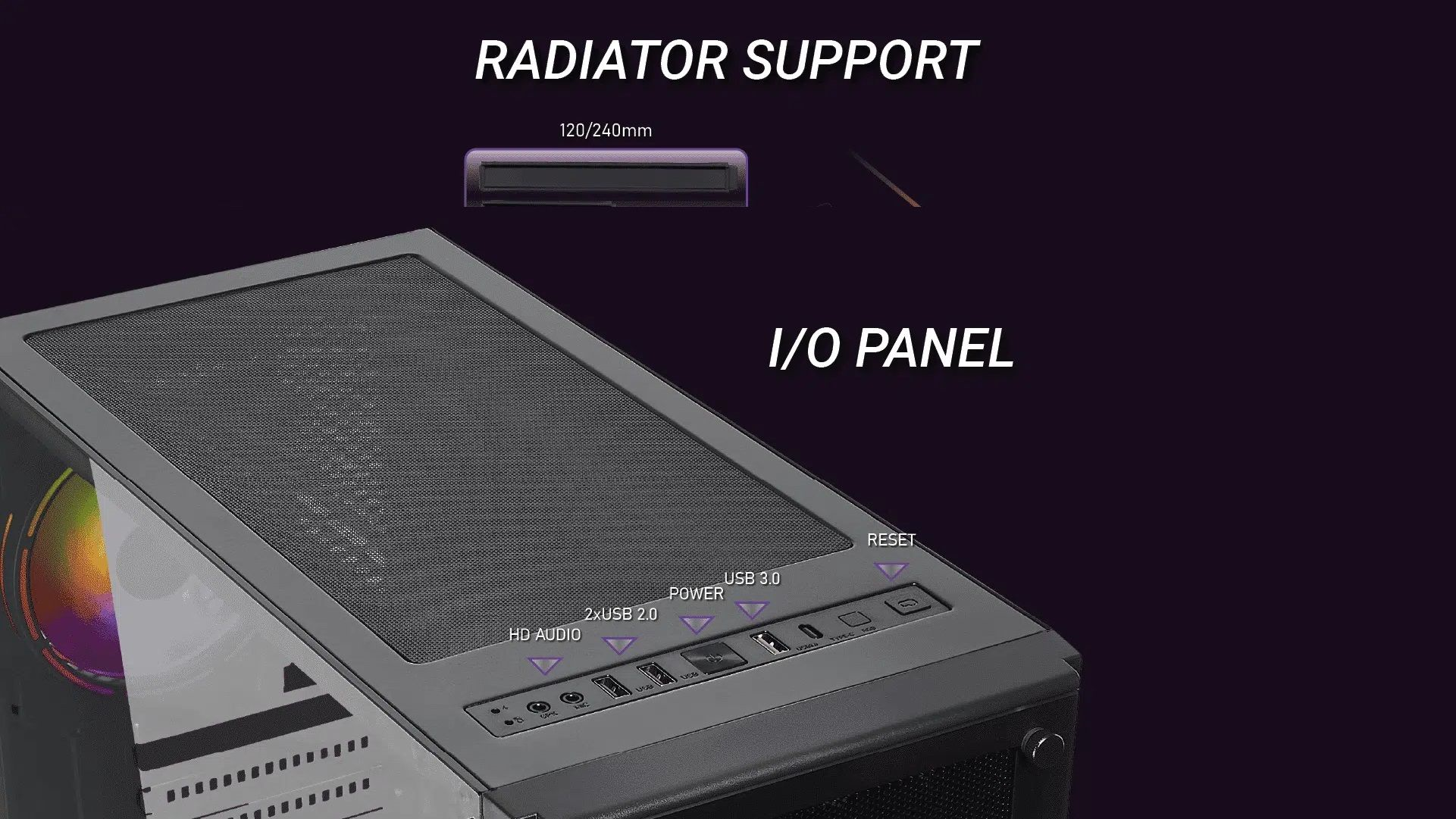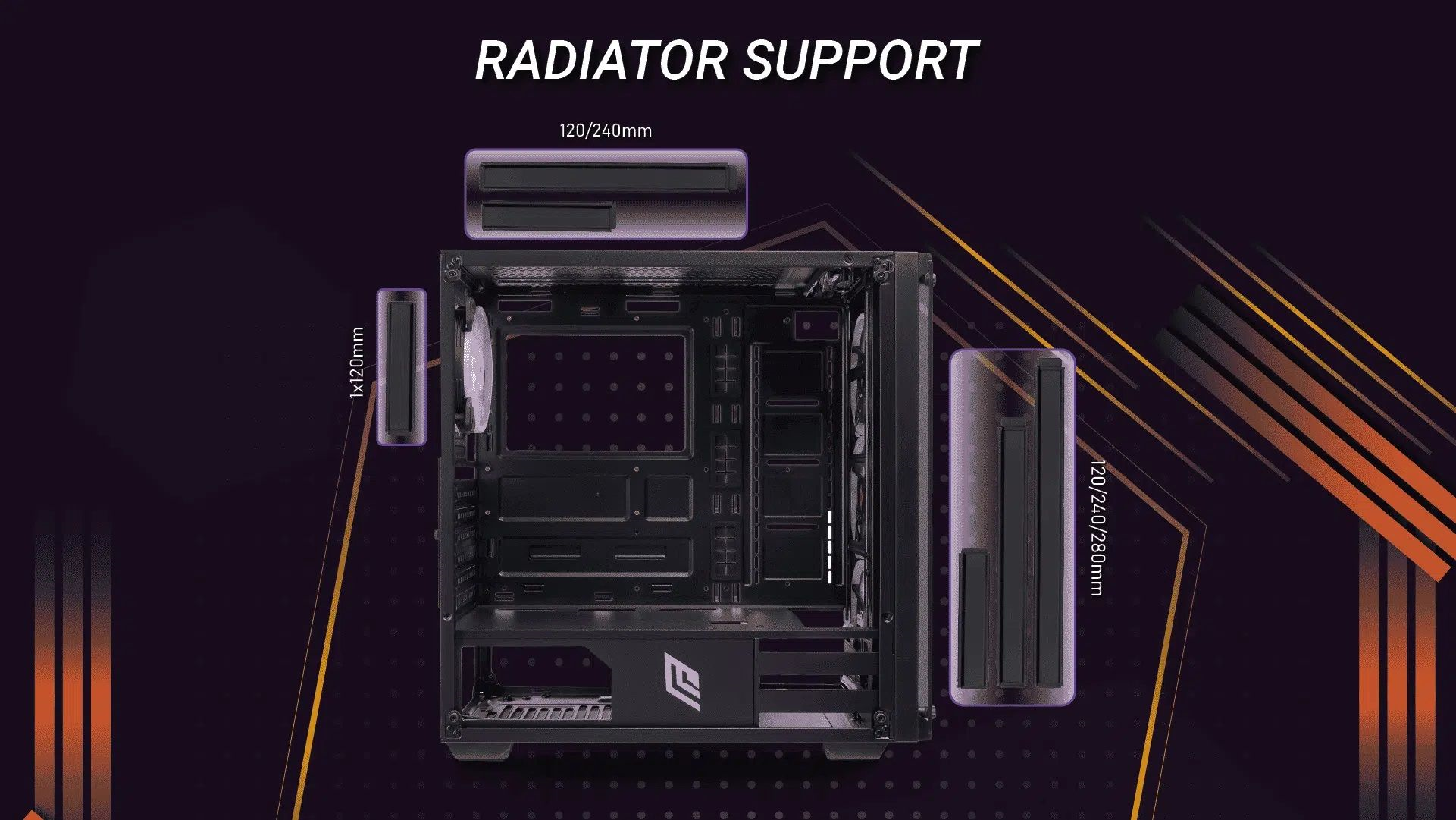 Radiator Support: Front 120/240/280| Rear 120mm | Top 120/240mm