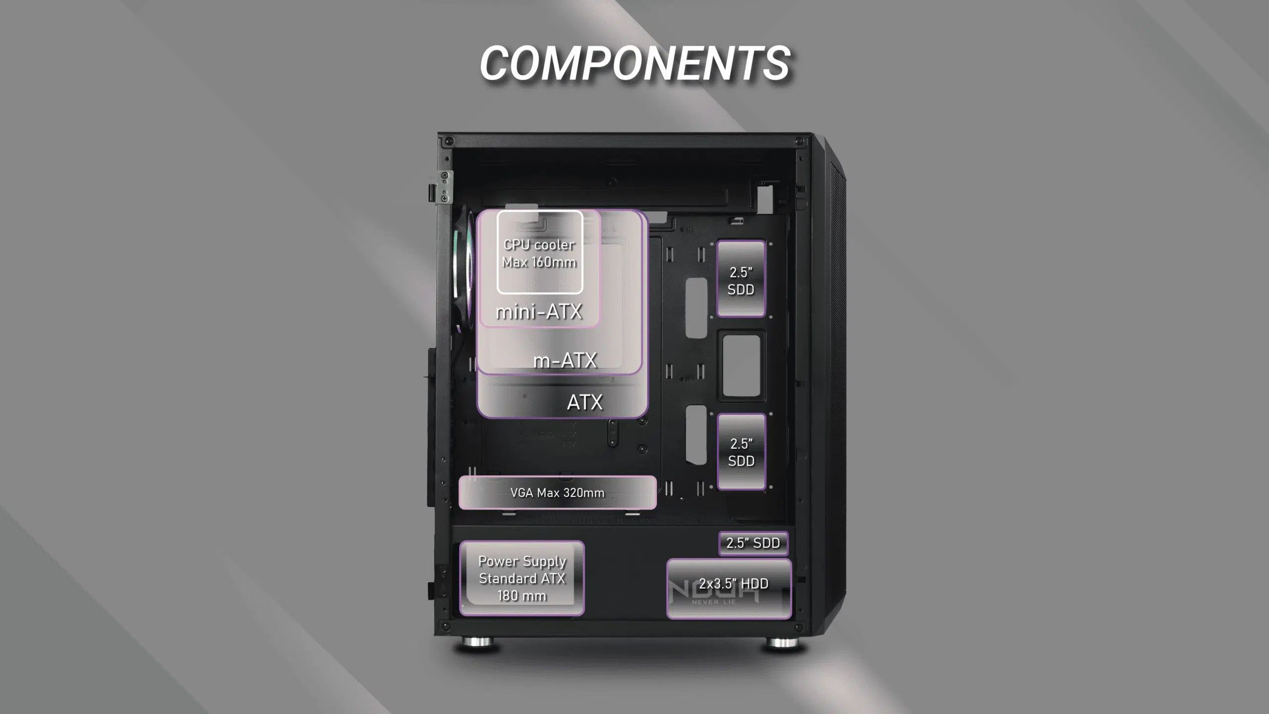 Power supply: Standard ATX Bottom 180 mm