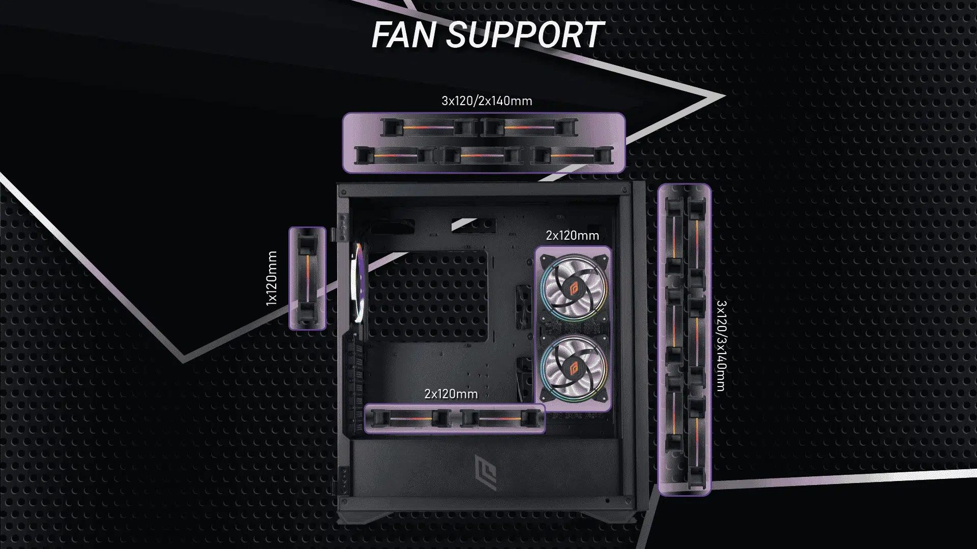 Fan Support: Top 3*120/2*140 mm | Front 3*120/140 mm