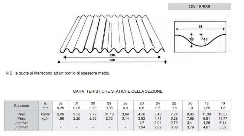 Spessore mm. 0,6 ÷ 1,5 Pendenza minima 15% Acciaio Zincato