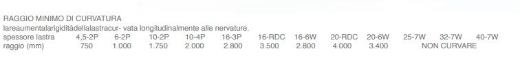 La scelta dello spessore della lastra si definisce in base ai valori di carico neve (pressione) e vento (pressione/depressione) richiesti ed alle dimensioni della lastra.