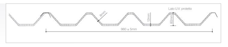 ArcoPlus1000 è un sistema modulare grecato , composto da pannelli di policarbonato alveolare coestruso a tre pareti , con spessore variabile 8-12 mm , perfettamente sovrapponibile longitudinalmente e consente di ottenere sia coperture continue e sia lucernari colmo gronda.