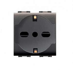 6 Pz- PRESA PRESA BIPASSO/SCHUKO Nero/Grigio/BiancoPresa schuko/bipasso 2P+T (2 moduli) a norma di sicurezza.Disponibile in 3 colori:-Nero-Grigio-Bianco