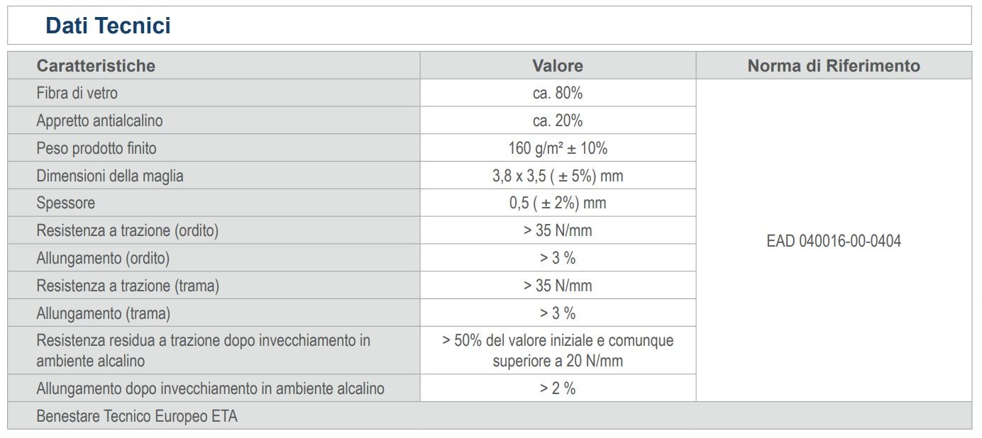 La rete FASSANET 160 ha la funzione di conferire al sistema un'adeguata capacità di resistere agli urti, nonchè di contrastare le tensioni dovute agli sbalzi termici e ai fenomeni di ritiro, prevenendo la formazione di crepe o cavillature.