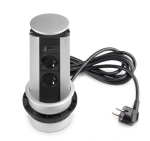 Connettore multipresa o torre di prese progettato per avere sempre prese accessibili delle prese di corrente in cucina, in ufficio e nei mobili di casa. È ideale per essere incassato in moduli bassi o alti, grazie al suo design retrattile per una facile estrazione e occultamento manuale.