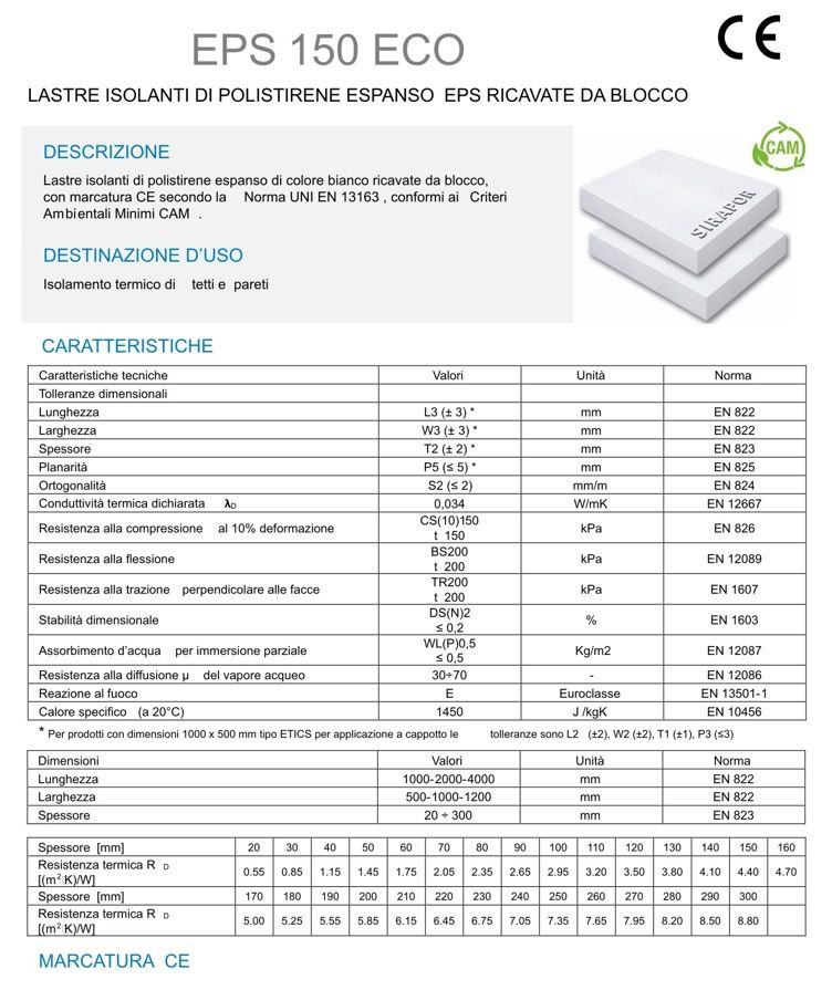SPECIFICHE TECNICHE EPS CON CERTIFICAZIONE CAM