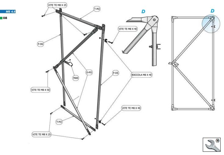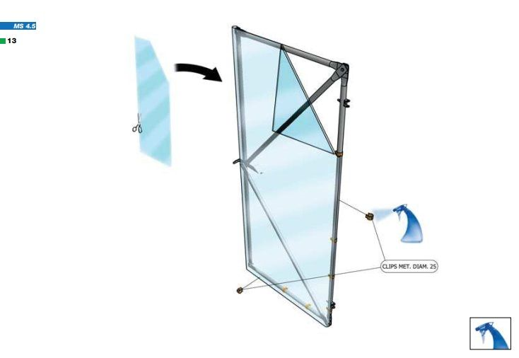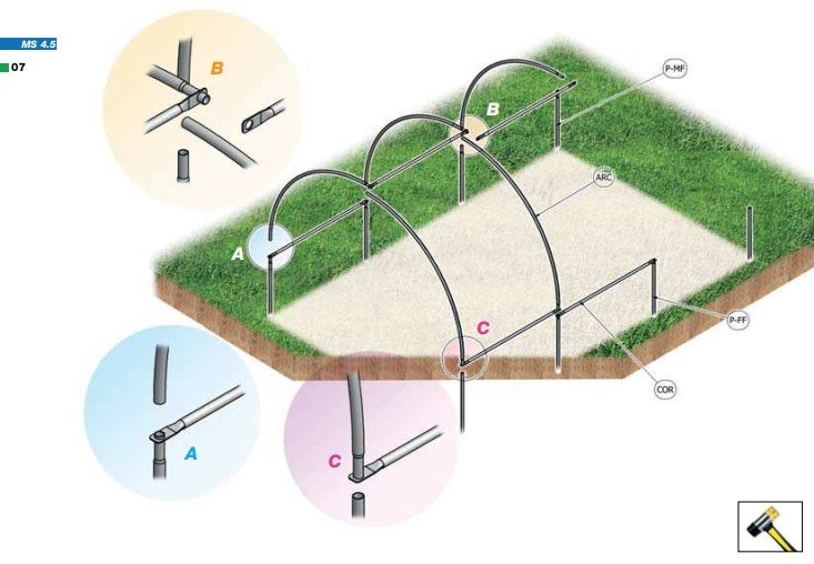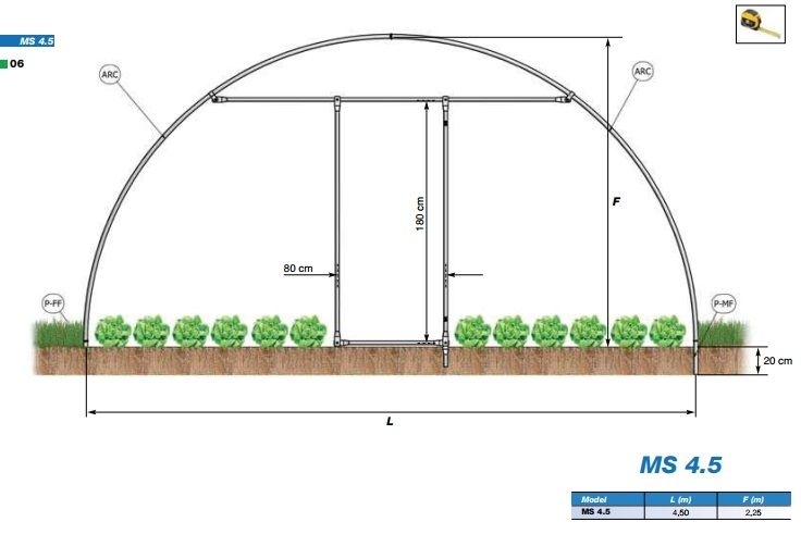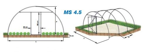La miniserra MS ha una struttura in tubo di acciaio zincato diam. 32, è ancorata al terreno senza l’uso di calcestruzzo; è comunque resistente alle normali sollecitazioni dovute al vento e alla neve. Può essere rivestita con rete antigrandine oppure con film di polietilene triennale.