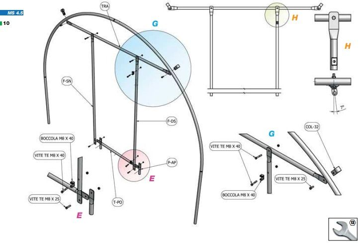 ARCATA MS2,0 Realizzata con tubo zincato Sendzimir Z275 diam. 32 x 1,5 mm, composta da 2 piedi verticali da interrare adeguatamente e 2 semiarchi.