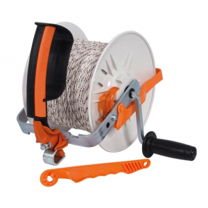 Avvolgitore con moltiplicatore 3:1 (ad ogni giro della manovella corrrispondono 3 giri del tamburo). Robusto avvolgitore in metallo e plastica d'altissima qualtità. Impugnatura robusta con protezioni per le mani e anello connettore per rapidi collegamenti elettrici. Manovella lunga per avvolgere senza fatica e tamburo con dispositivo di bloccaggio. Si aggiancia facilmente sia alla recinzione che all'apposito supporto. Include 500m di cavo in polietilene. Può essere facilmente montato sui montanti angolari della bobina. Maniglia portatile a doppio scopo inclusa.