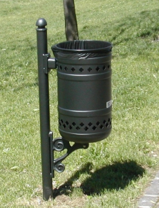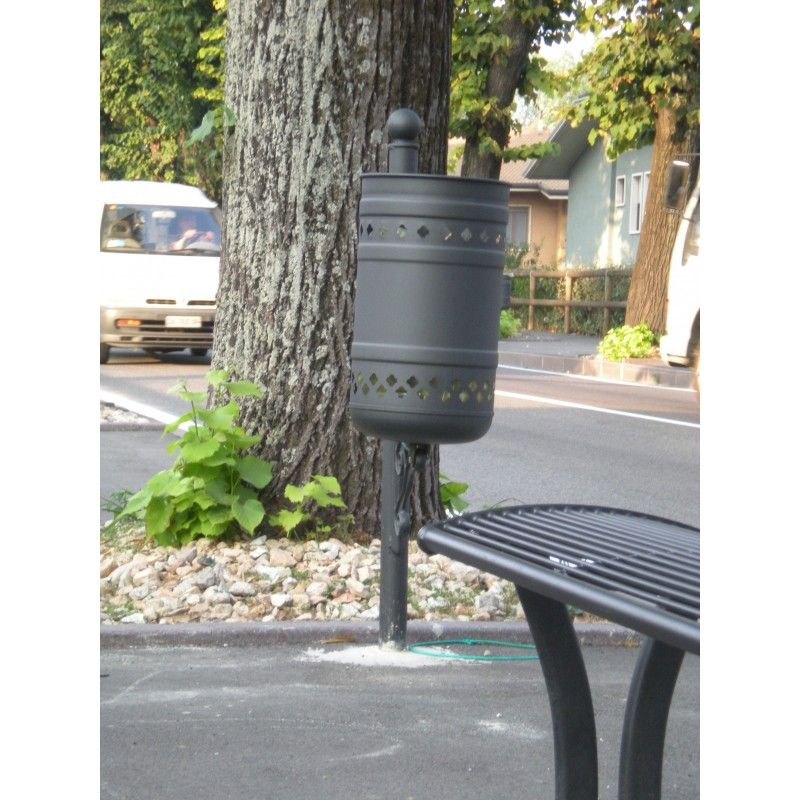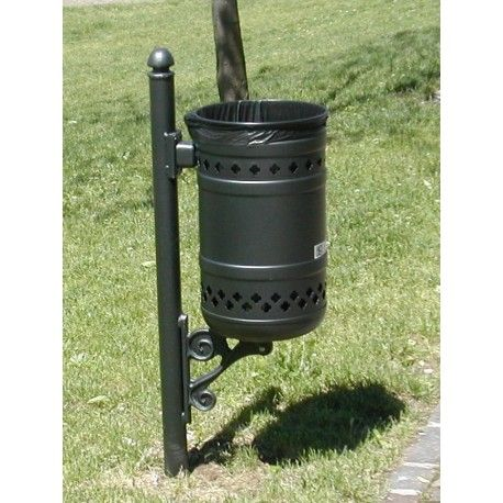 Cesto porta rifiuti di aspetto e finitura particolarmente curato adatto all’inserimento in centri storici ed aree urbane. Il cesto è realizzato in lamiera zincata spessore 10/10 e il palo in tubolare di acciaio zincato diametro 60 mm spessore 2 mm, sul quale è applicato un ricciolo ornamentale in fusione che funge da sostegno e fulcro di ribaltamento del cesto. Dotato di sistema aggancio/sgancio con apposita chiave. Tutti i particolari sono verniciati in colore grigio antracite con trattamento a polveri ferromicacea ad alta resistenza.