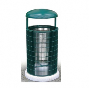Cestone Realizzato In Grigliato, Base Circolare In Calcestruzzo Sabbiato, Tettuccio in Lamiera Stampato