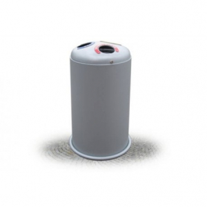 Cestone costituito da telaio in lamiera d’acciaio zincato sp. 10/10. Coperchio apribile in lamiera d’acciaio zincato sp. 20/10 provvisto di n. 3 bocche per l’inserimento dei rifiuti in funzione della tipologia che lo stesso può contenere indicata da appositi adesivi circolari. Cestone dotato al suo interno di appositi anelli ferma sacco. Le parti in acciaio zincato subiscono dapprima processo di pre-trattamento di sgrassaggio delle impurità attraverso soluzioni a vapori, successivamente asciugate e sottoposte a operazioni di verniciatura mediante pistole elettrostatiche che ricoprono i pezzi di vernice di polvere allo stato farinoso. Successivamente il manufatto è sottoposto a polimerizzazione in forno, ovvero, processo che permette alla polvere di solidificarsi cocendo ad una temperatura di 180/200° C in un forno a circolazione di aria calda. I pezzi usciti dal forno vengono raffreddati naturalmente. Le polveri utilizzate nel processo di verniciatura sono atossiche secondo normative vigenti. Colorazione RAL a discrezione del cliente.