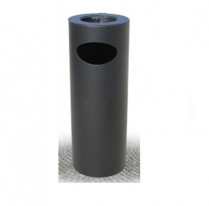 Cestone diametro cm 35 realizzato in lamiera di acciaio spessore 10/10 con posacenere superiore dotato di elemento di spegnimento sigarette. Bocca frontale per inserimento rifiuti. Il cestino è dotato di anello reggisacco. L’apertura del coperchio a ribalta permette una facile asportazione.