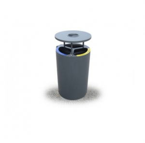 Cestello realizzato interamente in lamiera sagomata d’acciaio zincato dotato di ribordatura superiore suddiviso in tre scomparti da pannellature in lamiera d’acciaio zincato. Coperchio superiore e divisorio realizzati in lamiera d’acciaio zincato sagomata con tecnologia laser. Dotato di posacenere fisso con retina per lo spegnimento dei mozziconi. Sistema di svuotamento mediante apertura superiore con ribaltamento del coperchio + divisorio. Dotato internamente di anelli reggi sacco per ogni scomparto ed adesivi colorati. Ancoraggio: filo pavimento Ingombro: cm 50 x 50 x 100 h Capacita' complessiva Cestello: 150 litri ca.