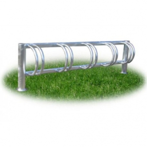 Portabiciclette realizzato per la struttura portante in tubo tondo d’acciaio Ø mm. 40, elementi di parcheggio biciclette in tubo tondo d’acciaio Ø mm. 25.