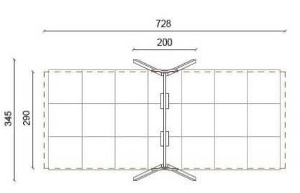 Area d’ingombro: cm 200 x 345