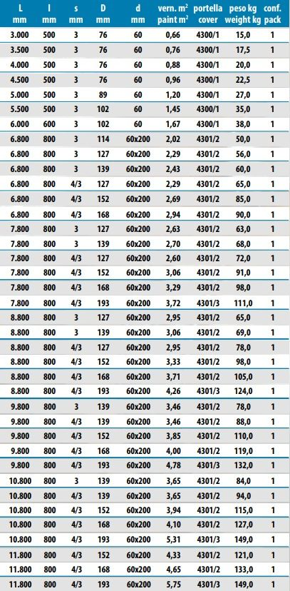 A richiesta possono essere prodotti pali con lunghezze e diametri diversi da quelli indicati.