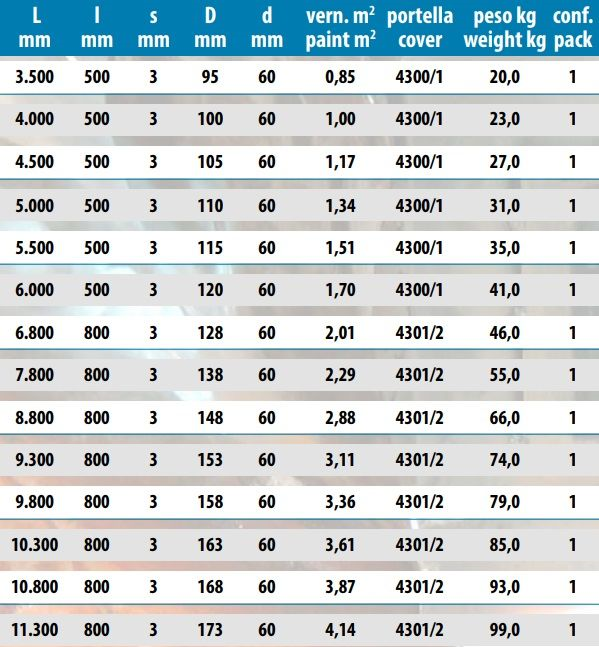 A richiesta possono essere prodotti pali con lunghezze e diametri diversi da quelli indicati
