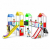Castello completo di scivoli con pista in acciaio inox e fianchi in polietilene alta densità PEHD, montanti in tubolare d’acciaio 80x80 mm zincato e verniciato polveri ; tamponamenti, tetti e pannelli in polietilene alta densità PEHD, ponte tibetano con funi Hercules, arrampicate con piani in polietilene e prese d’arrampicata in resina, ponte tunnel a doppia parete in polipropilene.