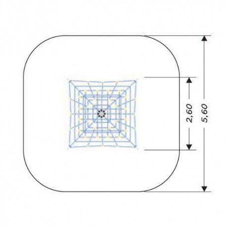 Piramide d’arrampicata statico in corda costituita da funi intrecciate che formano una struttura tridimensionale. Le funi utilizzate sono del tipo Hercules costituite da 4 funi in acciaio rivestite in poliammide alta resistenza. Le parti strutturali, il pilone e gli anelli di tensionamento sono realizzati in acciaio zincato.