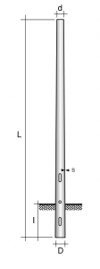 Palo conico laminato a caldo in HSP in acciaio S275 JRH UNI EN 10219 , zincato a caldo secondo UNI EN ISO 1461, verniciato colore peltro bugnato.