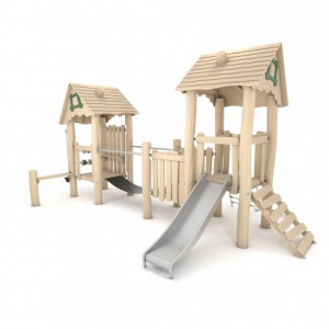 Castello doppia torre con montanti in legno di robinia Ø 18 cm senza spigoli vivi.