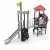Piattaforme e pareti d'arrampicata realizzate con durevoli lastre HPL antiscivolo e impermeabili. Tetti, pannelli laterali, elementi mobili, bandiera e pannello musicale realizzati in HDPE, resistente agli agenti atmosferici.
