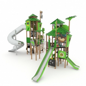 Struttura in acciaio zincato e verniciato a polvere o acciaio inossidabile di 80 x 80 cm Piattaforme e pareti da arrampicata realizzate in resistente piastra HPL antiscivolo e impermeabile Tetti e pannelli laterali realizzati in durevole lastra HDPE, resistente alle condizioni atmosferiche Pannelli in policarbonato trasparente con una stampa permanente resistente ai graffi e condizioni meteorologiche Scivoli in acciaio inossidabile con pannelli laterali in HDPE resistenti Scivolo a tubo in acciaio inossidabile Pannelli didattici ed elementi mobili realizzati in lamiera HDPE, resistente a condizioni meteo Tavolo da disegno realizzato con lastra HPL durevole, resistente agli agenti atmosferici Finestre a labirinto in policarbonato, sfere in materiale sintetico Pannelli musicali realizzati in resistente HDPE e piastra HPL, resistenti alle condizioni atmosferiche Pietre durevoli per l'arrampicata in composito di resina poliestere con cariche minerali Sedili certificati e sicuri Catene calibrate in acciaio inossidabile, che prevengono l'intrappolamento delle dita Barre, scale e corrimano in acciaio inossidabile Viti in acciaio inox e / o viti ricoperte con tappi in plastica Testate sicure sulla parte superiore della struttura in gomma o polipropilene