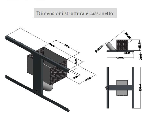 Corpo: Struttura -Cassonetto- reggi pannello e porta batteria con sportello realizzati in ferro