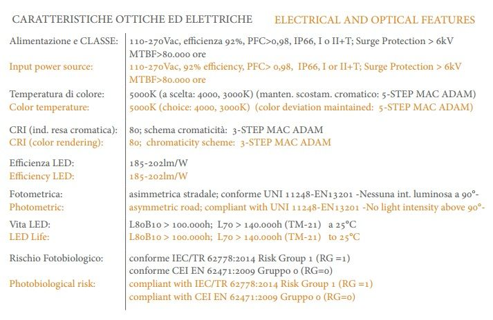 Certificazioni: contiene Modulo led integrato per apparecchi stradali e illuminazione stradale, certifcato ENEC: ENEC LICENCE REF NO. SE-ENEC-2101465