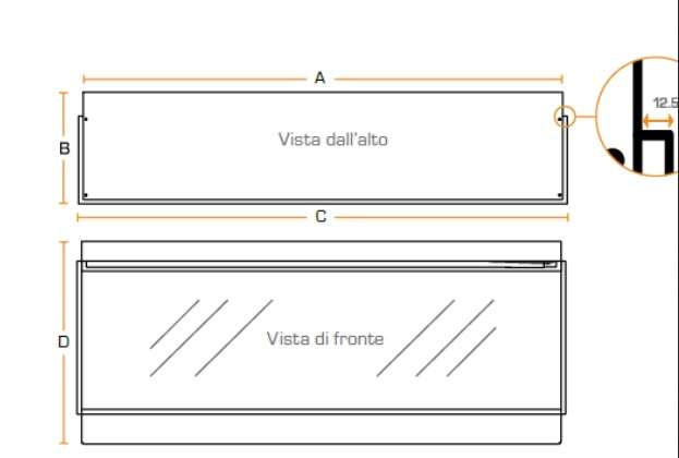 Dimensioni: L 160 x H 56,3 x P 29,8 cm. Assorbimento solo effetto estetico: 212 watt Potenza di riscaldamento: 1,5 kW