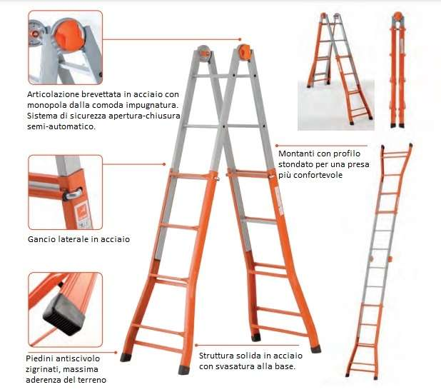 Scala Telescopica Gigante In Acciaio 141x59x19 cm