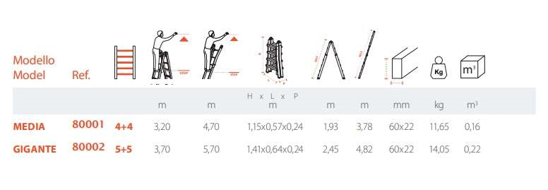 A norme UNI-EN 131-4 Piolo esterno 30x30 mm Sezione tubolare mm. 60x22 - portata max 150 kg.