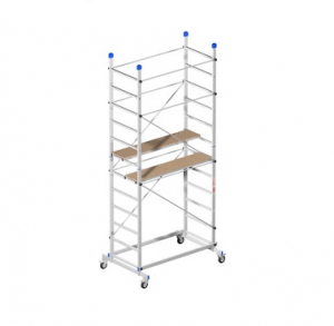La facilità di spostamento è il suo punto di forza, grazie alle 4 ruote ø 100 mm, dotate di freno. Veloce nel montaggio per l’esclusivo innesto della torre. Altezza di lavoro m 3,98. Piano di lavoro incluso. Packaging in termoretraibile.