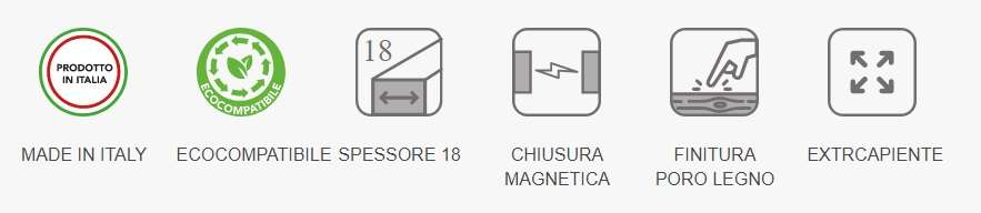 Caratteristiche tecniche: Materiale : Truciolare nobilitato Emissione Formaldeide : E1UNI EN 717-1