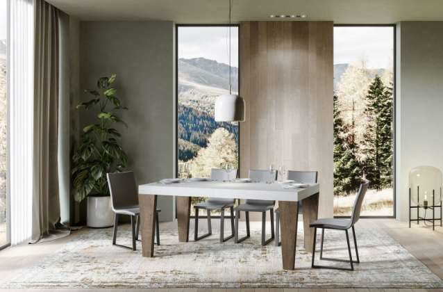 Le allunghe possono essere inserite progressivamente, consentendo configurazioni di lunghezza intermedie, così potrete scegliere se utilizzarlo con una o due allunghe in base alle vostre esigenze di spazio.