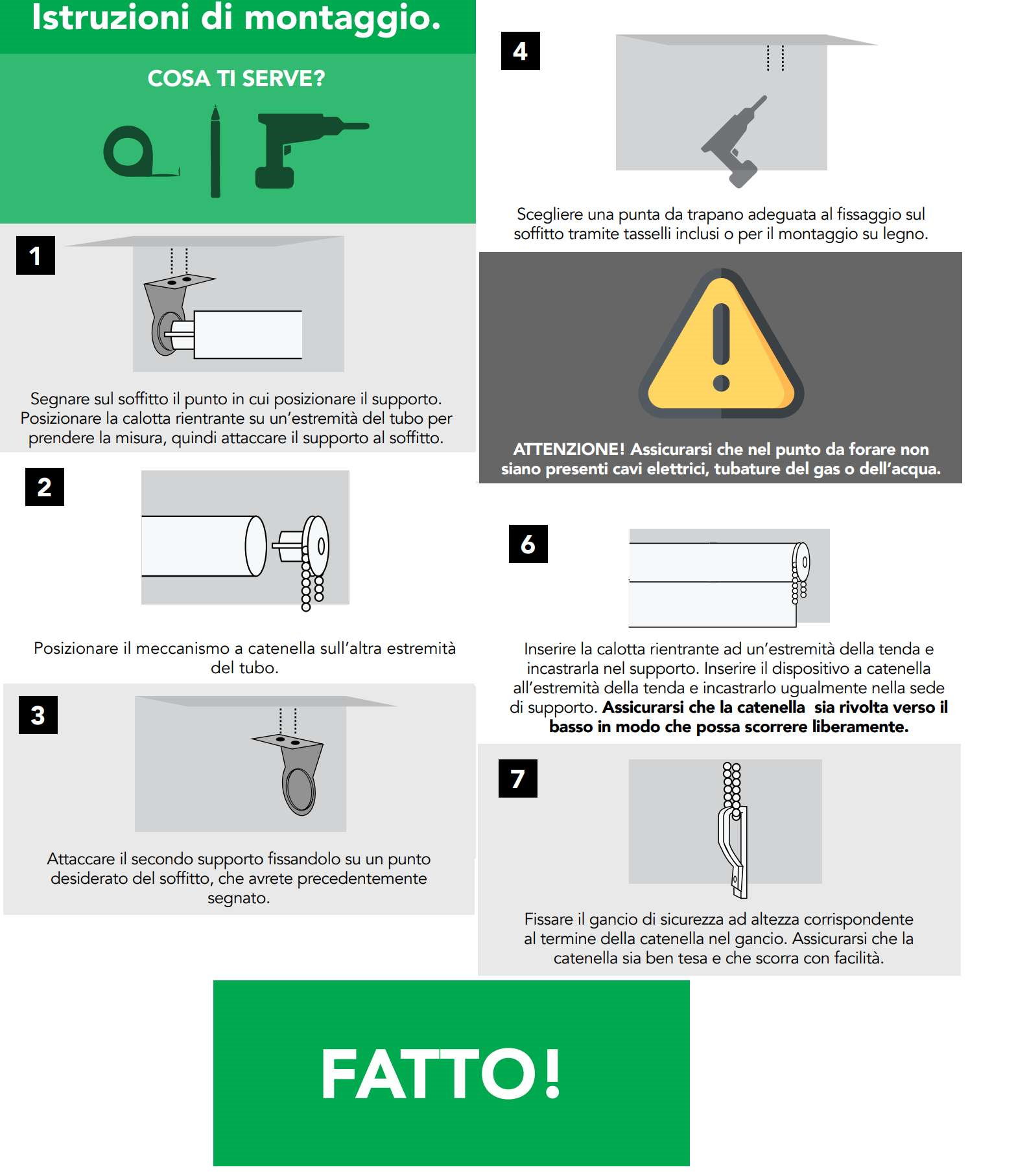 Materiale : Tessuto filtrante per una perfetta illuminazioe della casa , 100% poliestere Accessori di montaggio : Inclusi Funzionamento : Manuale con catenella Supporto di fissaggio : Alluminio Catenella : Plastica bianca Bordo inferiore : Plastica Regolabile : in lunghezza e in larghezza