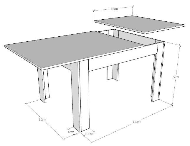 Dimensioni: cm. L.120 P.90 H.77 (allungabile a L.180 con una allunga).
