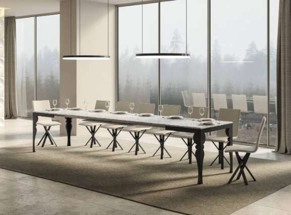Le gambe e il telaio sottopiano in ferro verniciato è in grado di garantire solidità alla struttura, anche quando completamente esteso. Si adatta ad ogni esigenza di spazio, grazie al particolare sistema di allunghe che gli permette di estendersi fino a 420 cm.