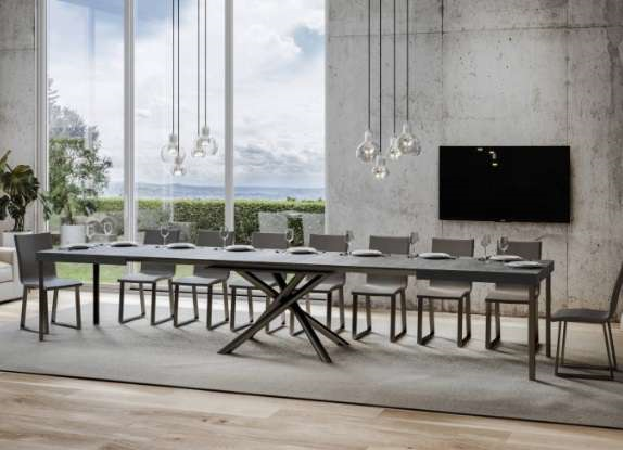 Dimensioni: Larghezza: 160 cm, Profondità: 90 cm, Altezza: 77 cm Allungabile progressivamente fino a 420 cm con 5 allunghe.