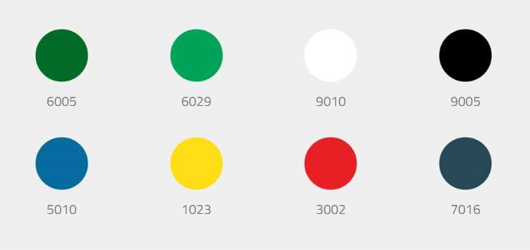 Verniciatura : Verniciatura a polveri con resine poliestere per esterno su materiale zincato a caldo dopo la lavorazione
