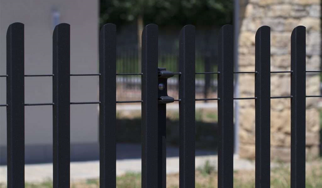 Piantana a sezione quadra 40 x 40 mm o 50 x 50 mm, zincata a caldo dopo la lavorazione a norme UNI EN ISO 1461 e successivamente spazzolata e verniciata a polveri termoindurenti per esteri in colore nero micaceo.