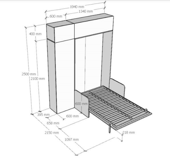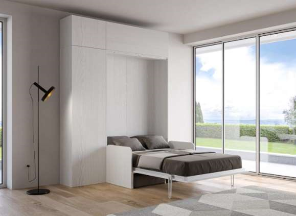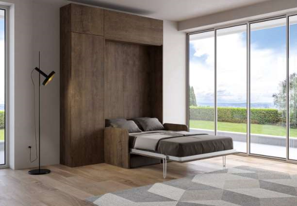 Letto matrimoniale a scomparsa estremamente pratico, quando aperto non presenta differenze da un normale letto matrimoniale, per misure e comfort.